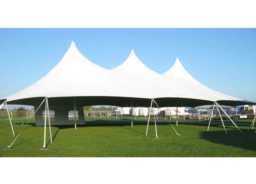 Available in 40’x60’ or 40’x80’ dimensions, this unique tent style touts high peaks of 20.5’, and can seamlessly articulate with the Marquee tent system. Impress your guests with a visually pleasing architecture, or even utilize the high-peaked space to showcase an impressive light show to compliment your party.